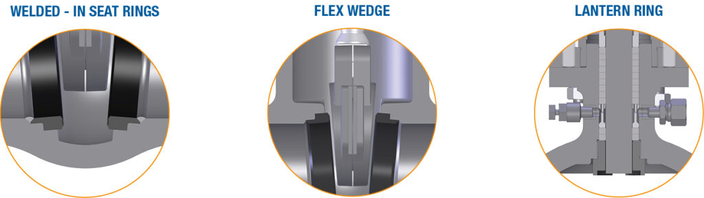 Welded-in seat rings are supplied as a standard. The rings are part of the trim of the valve. They can be externally threaded and internally notched for easy installation and dismantling. Special attention is given to the seating surfaces which are ground and lapped for a tight seal.